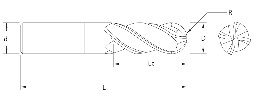 Endmill RadiusCutting lengthShank DiameterOverall Length
