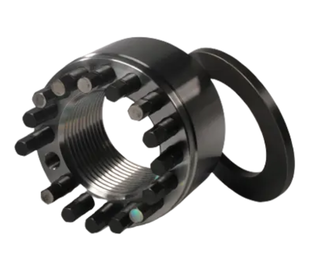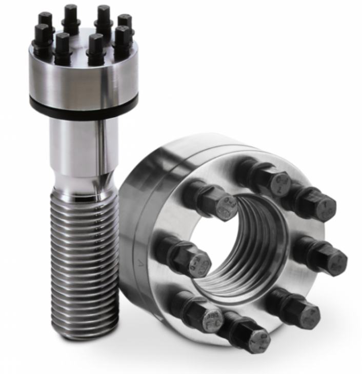 Superbolt tensioners offer simple and cost-effective tightening of large size bolts. The joints can be tightened with high accuracy without requiring specialized skills or heavy tooling. the pretension force of the large main thread is distributed to many smaller pressure bolts. Because the pressure bolts are smaller, a conventional torque wrench can be used to achieve the correct pretension force.